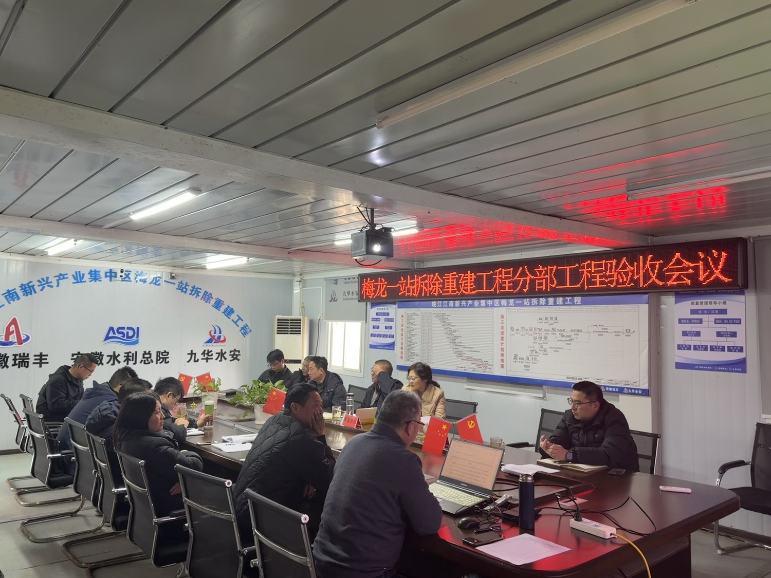 1月29日,皖江江南新兴产业集中区梅龙一站拆除重建工程EPC项目顺利通过分部工程及水下工程验收。这标志着项目已成功攻克主体结构中技术最复杂、施工难度最大的水下建设核心任务,整体工程正式迈入收官冲刺的关键阶段,为项目按计划全面完工并交付使用筑牢了坚实根基。