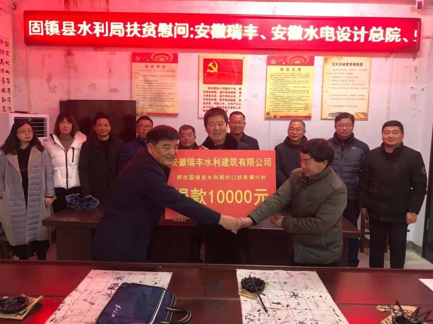 真情帮助暖民心,精准脱贫解民困。农历新年前夕,公司董事长兼总经理王焕良带队前往固镇县新马桥镇黄圩村开展脱贫攻坚工作,并向该村弱势困难群体捐赠一万元,希望他们能过上一个安定美满的幸福新春。此次活动体现了我公司一直以来积极投身社会公益事业,回馈社会,勇于社会担当,以实际行动践行公司的企业宗旨和企业精神。