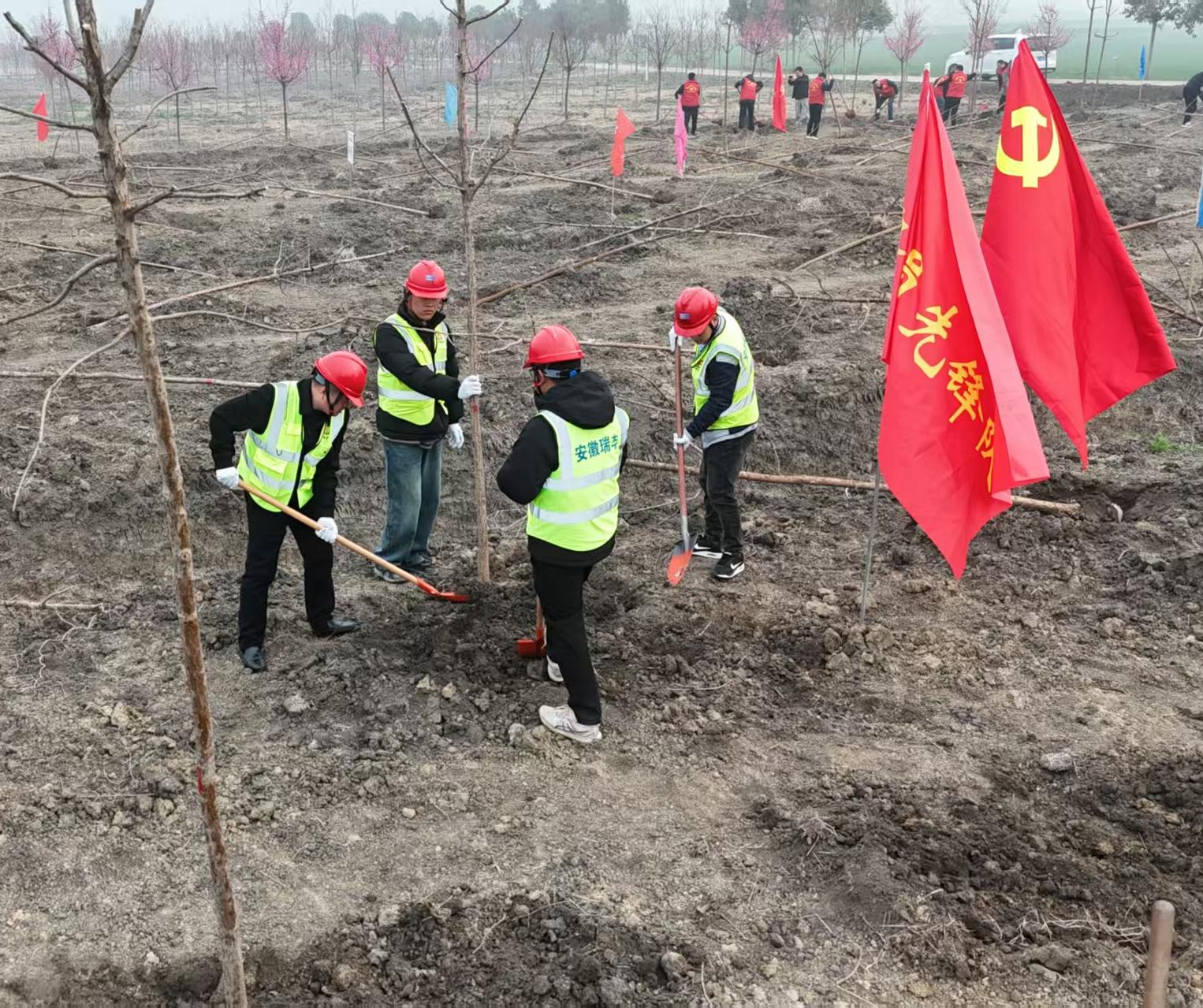 3月12日,集团公司副总经理、何山水库项目部负责人、何山水库项目联合党支部委员吴玉凯带领全体员工踊跃参加植树活动,大家分工协作,挥锹铲土、扶苗浇水,劳动现场气氛热烈。通过植树造林,项目部为皖北大地奉献出一片新绿,以实际行动展现安徽瑞丰的责任担当。